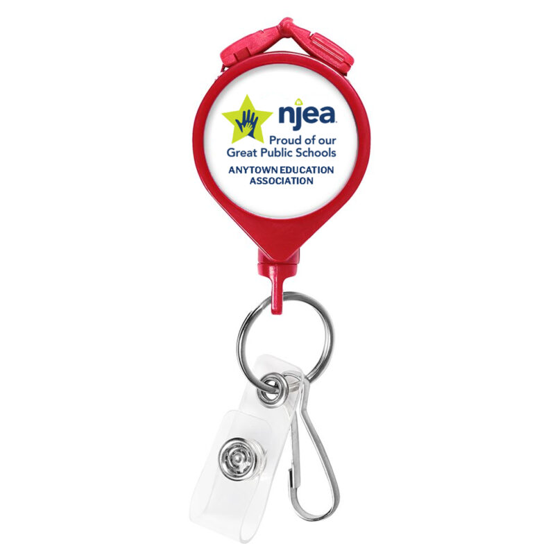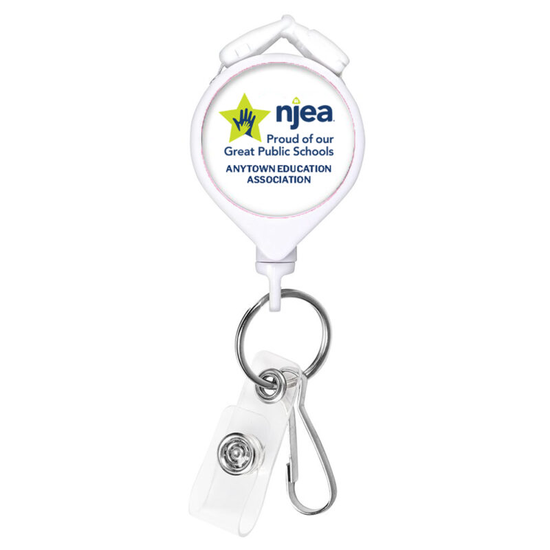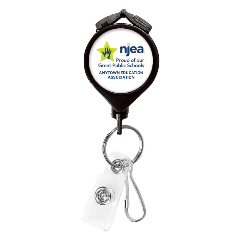 The world’s first retractable lanyard. 1/4″W x 19″H blank ribbon lanyard with color matching breakaway. Easily adjust the length of your lanyard using the backside lock & adjustable button. Durable vinyl strap “J” hook, 0.75″ split ring attachments. Sonic welded plastic body. Polished stainless steel internal spring. The most unique lanyard around!. Newly patented piece.