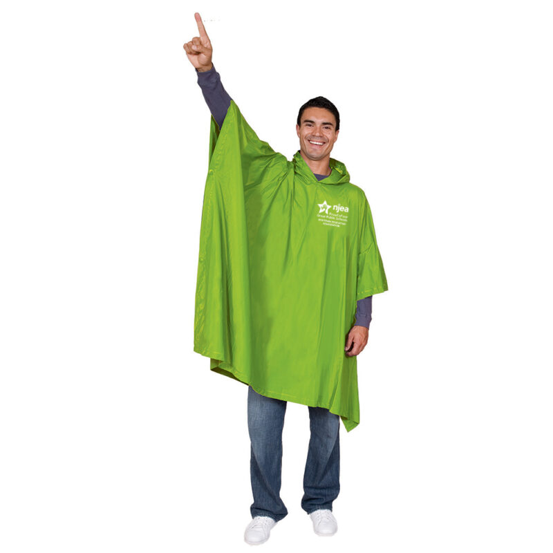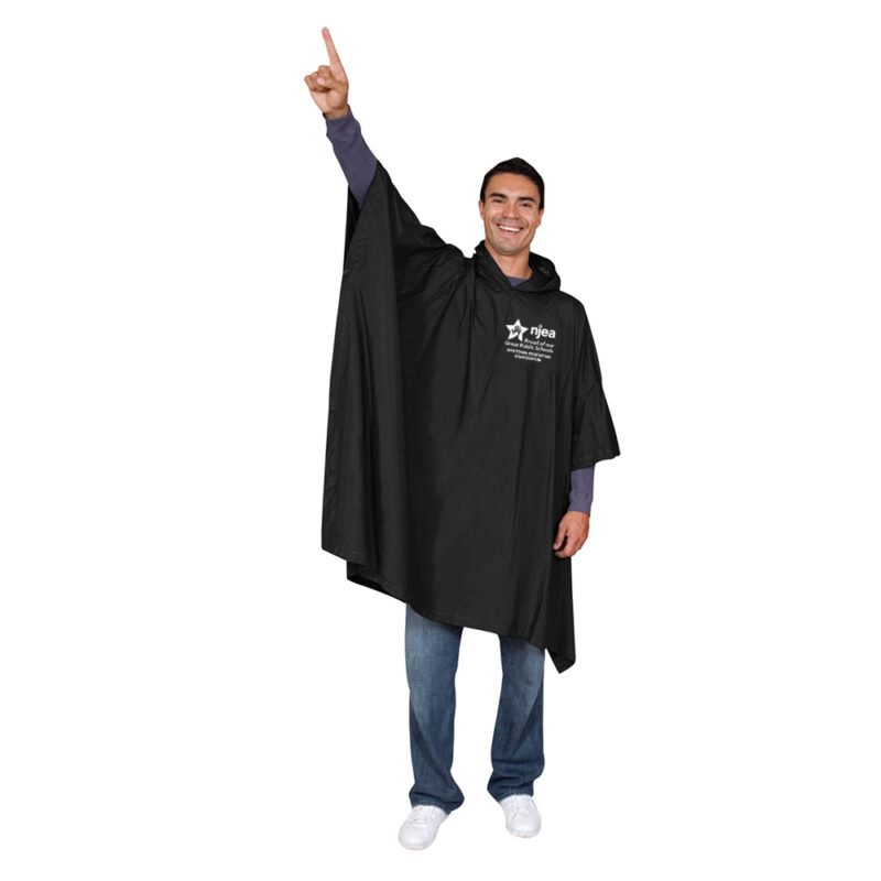 14MM MEDIUM WEIGHT ADULT RAIN PONCHO. Large 52″ x 86″ coverage. Roomy hood. 100% waterproof. One size fits most. Pricing includes a 1 color 1 location imprint on left chest. Left chest imprint is 5″ X 5″ MAX.