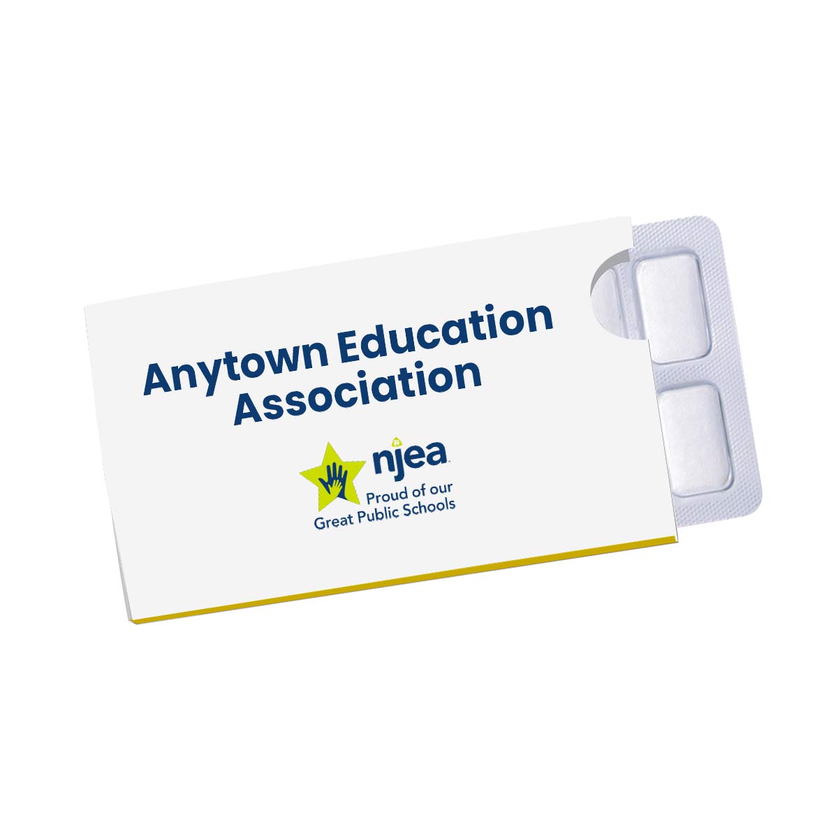 Blister Packed Tek Gum packs. Each pack includes a full-color imprint and 12 pieces of sugar free, peppermint gum per sleeve.